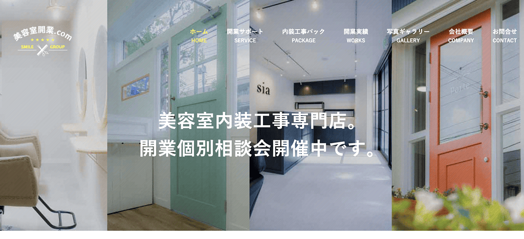 店舗事例も豊富に掲載されているため、サロンのイメージを固める際にも参考になります。ただし、実際の施工は登録企業が担当する形のため、品質や対応は各会社によって異なります。