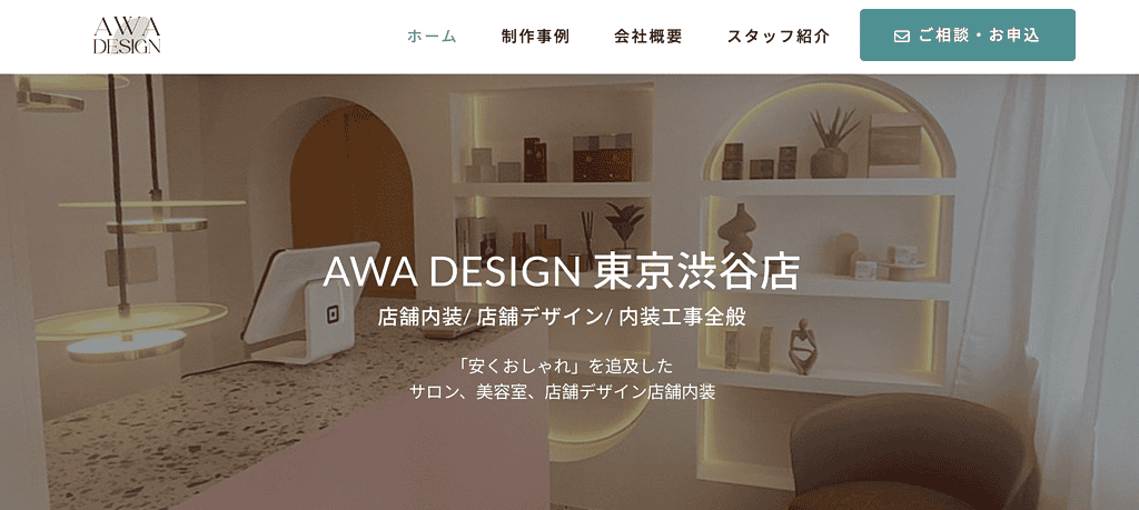 AWA DESIGN は、東京渋谷を拠点に、美容室・ネイルサロン・エステサロンなど美容系サロンの設計・内装・施工に対応している会社です。
