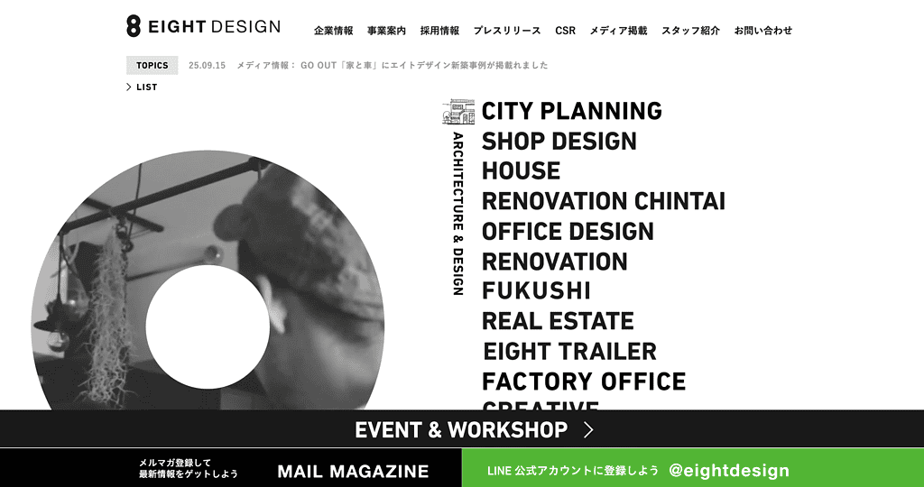 株式会社エイトデザイン は、美容室の内装設計に加え、ブランドづくりや情報発信まで包括的にサポートできるデザイン会社です。空間全体の世界観をつくる力に優れ、導入する家具や照明、素材選びなど細部まで美しく調和したデザインを提案します。特に、サロンを“ブランド化”したいオーナーから強く支持されています。