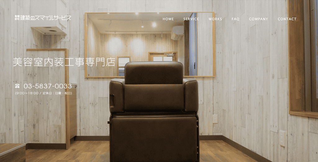 建築のスマイルサービスは、美容室や小規模店舗の内装工事を得意とする会社で、手の届きやすい価格帯と相談しやすさが魅力です。小規模サロンや個人美容師からの依頼が多く、部分改装やちょっとしたレイアウト改善にも柔軟に対応します。