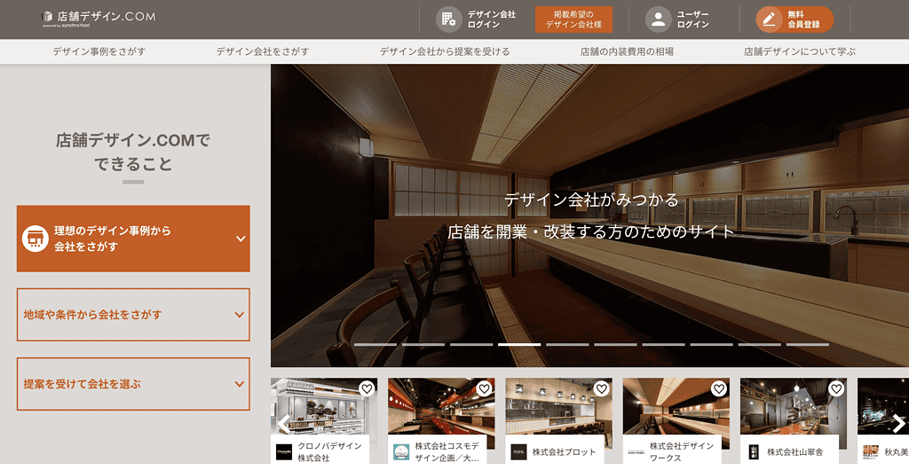 店舗デザイン.COM は、美容室や飲食店などの店舗に特化したデザイン会社を検索・比較できる国内最大級のマッチングサイトです。東京で美容室の内装業者を探したいオーナーが「複数社を比較したい」場合に便利で、予算、施工エリア、デザインテイストに合った施工会社を一度に探すことができます。